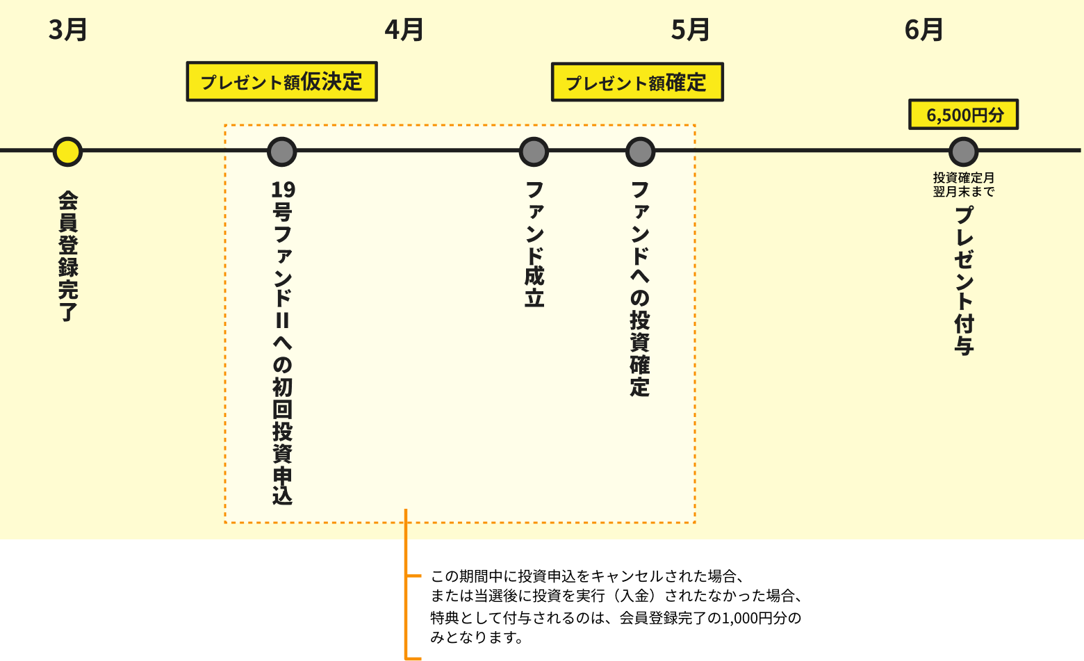 会員登録完了後、LEVECHYファンド19号Ⅱへ10万円以上投資実行すること